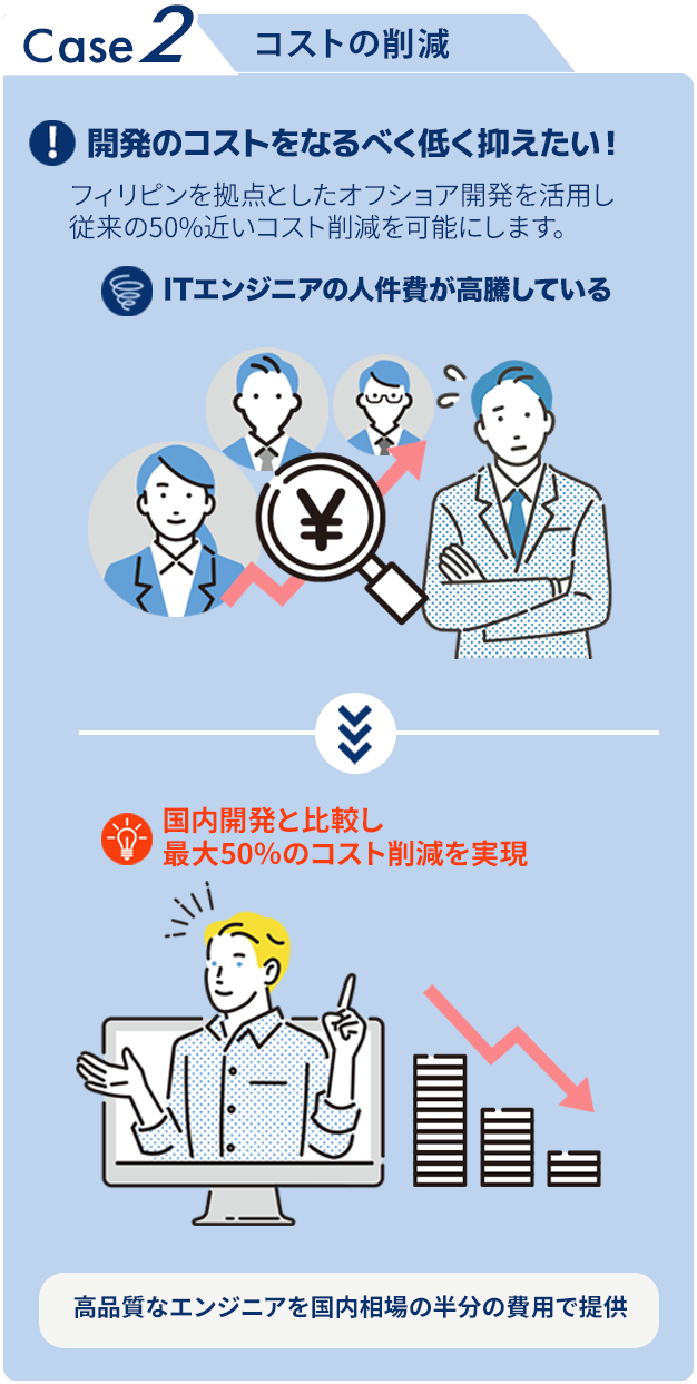 国内開発と比て最大50%のコスト削減を実現。高品質なエンジニアリングを低コストで提供